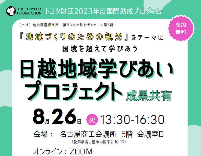 トヨタ財団さんの国際助成プログラムの助成を受けて実施しました。