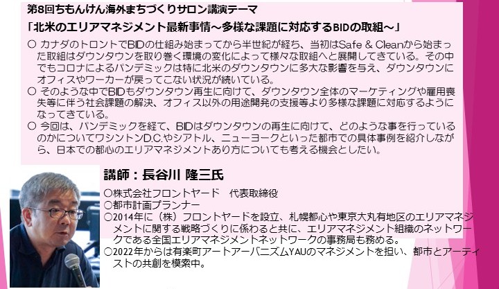 【講 師】長谷川 隆三 氏 (株式会社フロントヤード 代表取締役/都市計画プランナー)