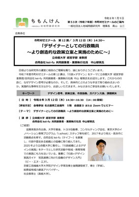 【テーマ】 デザイナーとしての行政職員 ~より創造的な政策立案と実施のために~