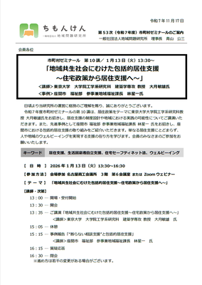 【テーマ】 「地域共生社会にむけた包括的居住支援~住宅政策から居住支援へ~」
